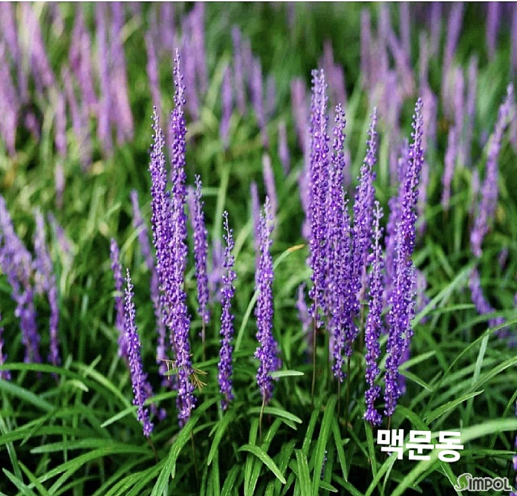맥문동은 반음지에서도 잘자라며 잔디대용으로도 사용 가능합니다.